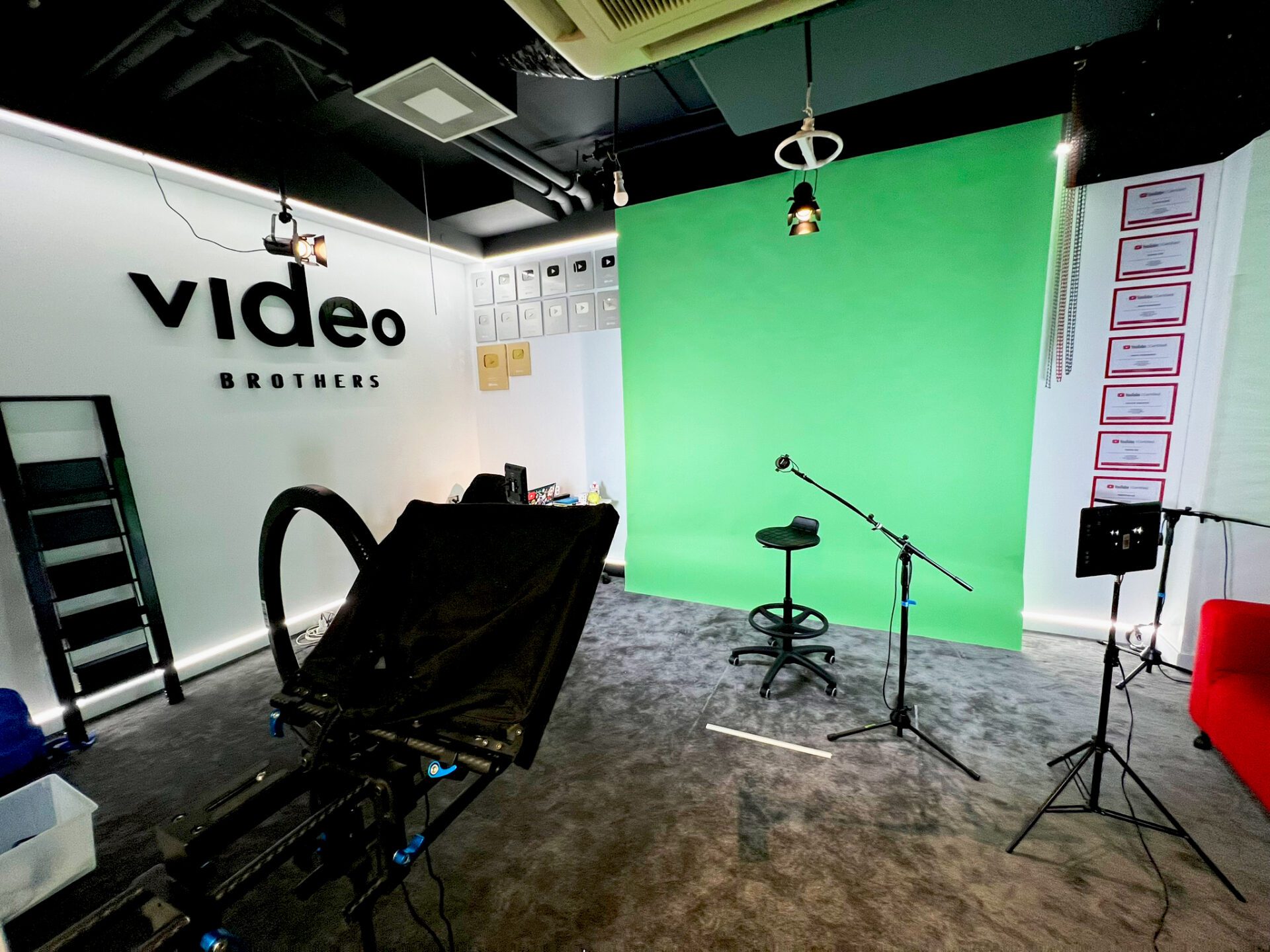 Bogate zaplecze sprzętowe do produkcji video, muzyki oraz nagrań lektorskich. Dla partnerów Video Brothers – możliwość bezpłatnego wynajmu oraz skorzystania ze studia.